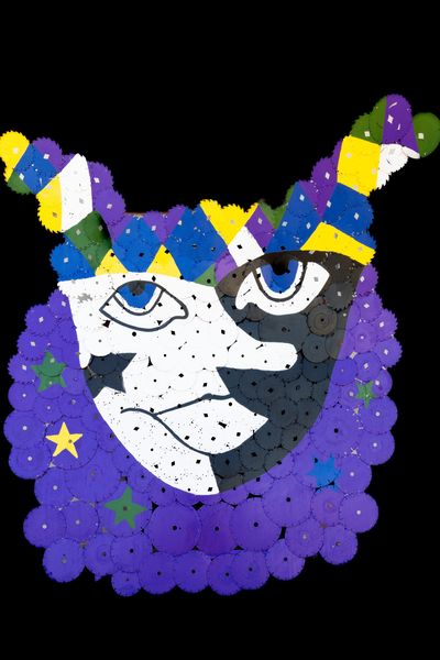 • Design: A Mardi Gras jester mask in purple, green, black, yellow and white